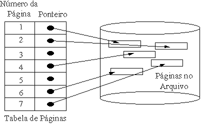 O arquivo é considerado composto por elementos de acesso aleatório, chamados páginas. Tais arquivos normalmente possuem um elemento denominado file descriptor, implementado através de uma tabela de páginas, que possui informações sobre a localização de cada página dentro do arquivo. Cada página possui um cabeçalho com informações referentes ao número lógico da página, tamanho, tipo e outros campos opcionais.