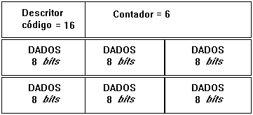 Exemplificando o que foi descrito acima, para transmitir seis (6) bytes o FTP enviaria um (1) byte para o descritor - com valor 16, dois (2) bytes para o contador - com valor 6, e seis (6) bytes de dados; como segue a figura: